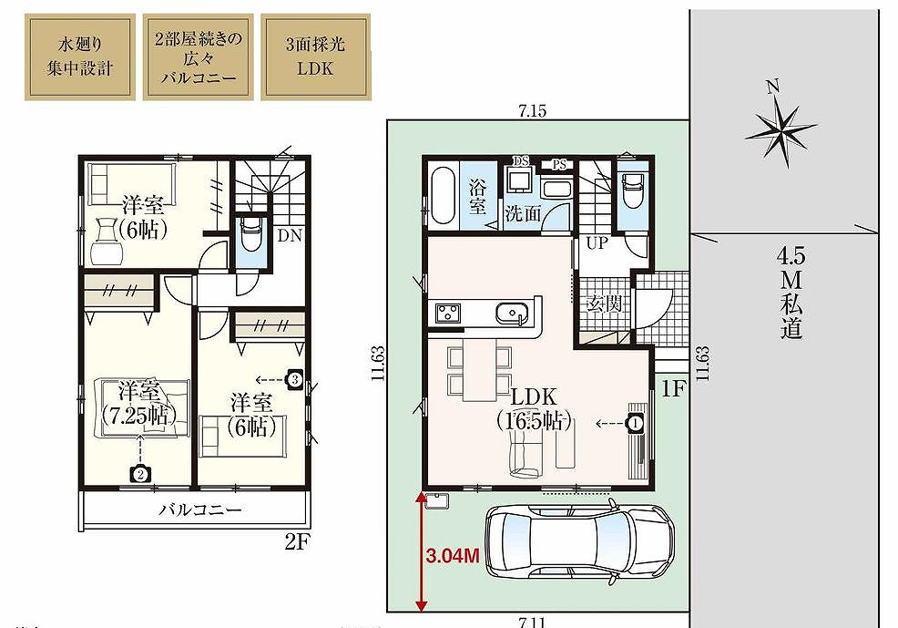 ・カースペース付き 3LDK