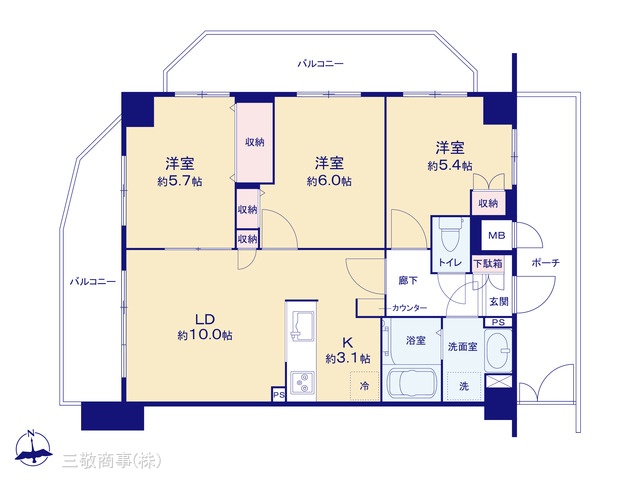 専有面積 | 64.8u | 間取り | 3LDK (-) | ||